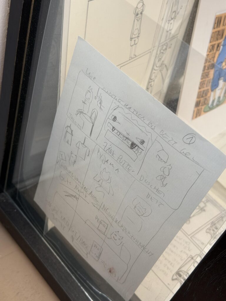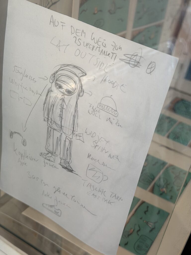 Es ist doch immer wie verhext. Wenn ich gewusst hätte, dass die beliebtesten Zeichnungen, ausgerechnet die sind, die an genau der Stelle hängen wo sich alle die Haxen brechen…ah, was soll das, die hängen schon genau gut dort wo sie hängen. Warum gerade aber diese beiden Vorzeichnung zu attraktiv wirken kann man nur vermuten. Kann man? Mich sprechen die auch an. Schrabbelige Striche, der erste Gedanke der Form auf Papier annimmt, da drüber geht nix.